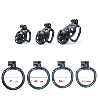 The Black Bubbles Chastity Cage is the perfect chastity cage for someone who wants to be locked up in smooth resin. It comes with a set of base rings that the cage attaches to, which can then be locked with the special keys provided. The cage features circular holes that are great for peeking through, as well as providing ventilation.