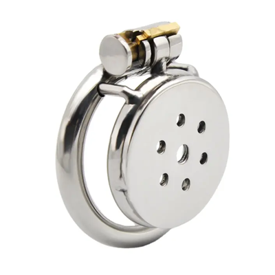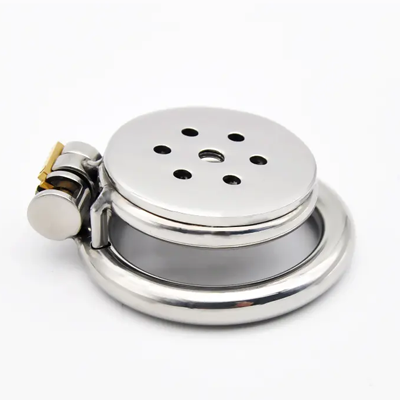 The Button Chastity Cage is perfect for men that want a small, metal cage that they can wear discreetly. It comes with a base ring that the cage attaches to, which is locked using the special keys provided. The cage has a small and flat profile which is perfect for wearing in public, but you will have to take it off to use the bathroom properly.