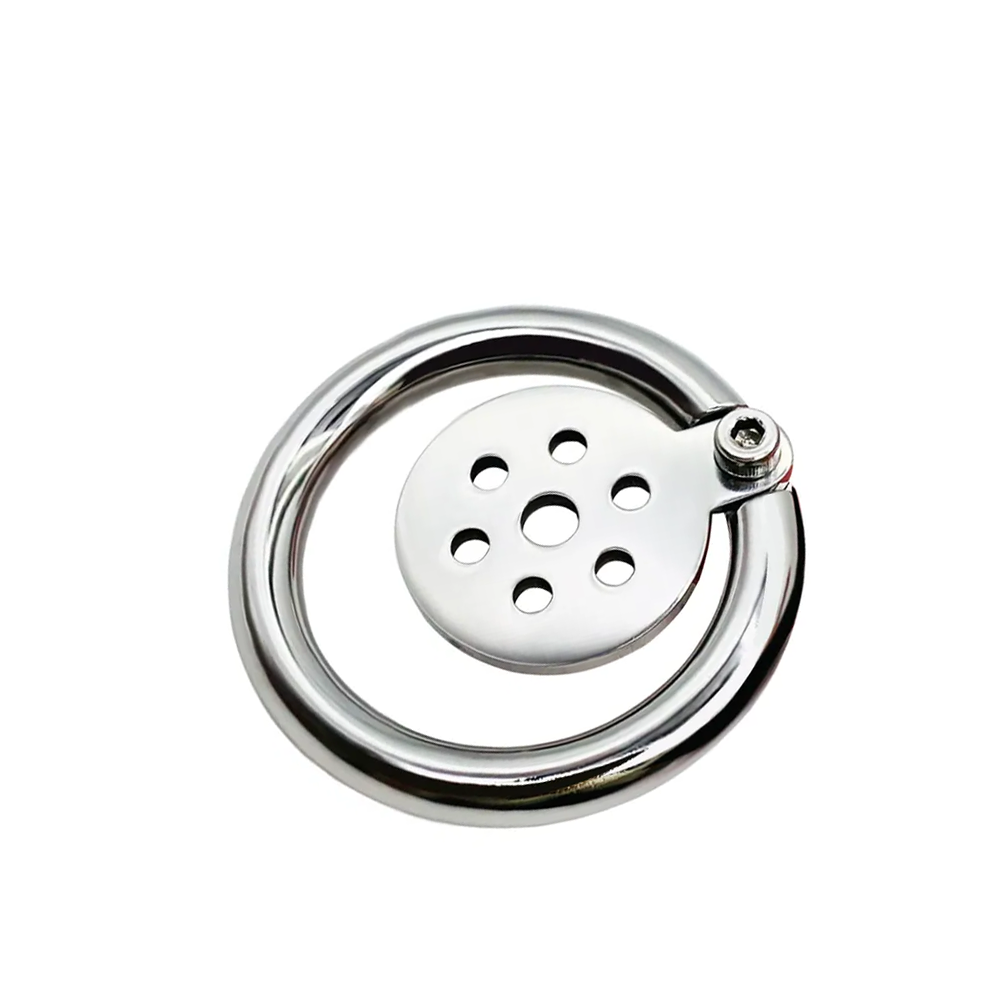 Our Flat Button Chastity Cage is perfect for men that want a small, metal cage that they can wear discreetly. It comes with a base ring that the cage attaches to, which can then be locked using its screw locking mechanism. The cage has a small, flat profile which is perfect for wearing in public but you will have to take it off to use the bathroom properly.