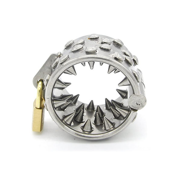 Kali's Teeth combines chastity and intense spikes into one device. Wearers who start to become erect will feel the inward pointing spikes dig into them, bringing pleasure and pain.