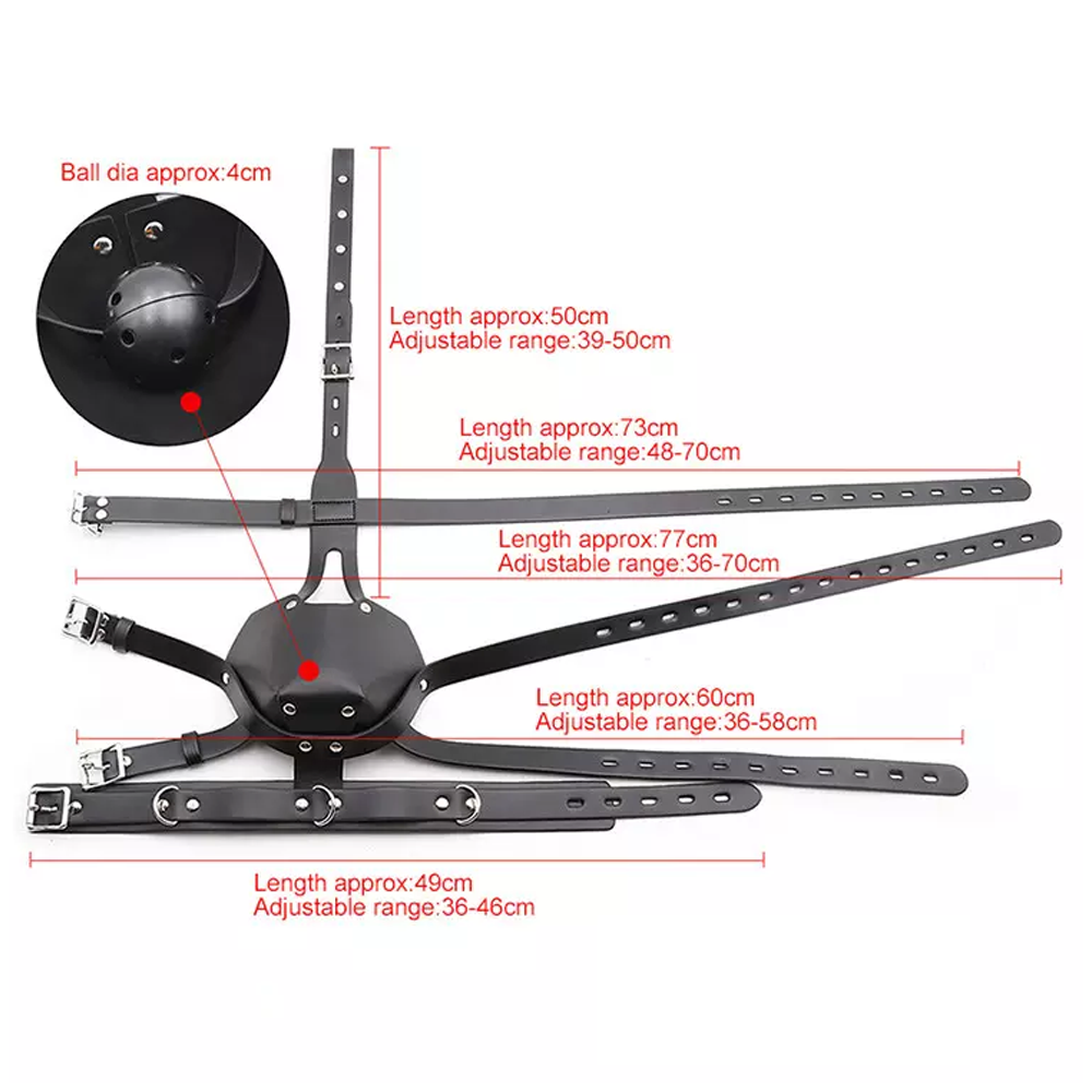 Become the slave you were meant to be with our vegan leather Slave Mask. This mask features a choker to ensure that your mask stays on, as well as a mouth restraint to make sure you stay quiet like a good slave. The mask is fully adjustable, and finished with metal studs to complete the BDSM look.
